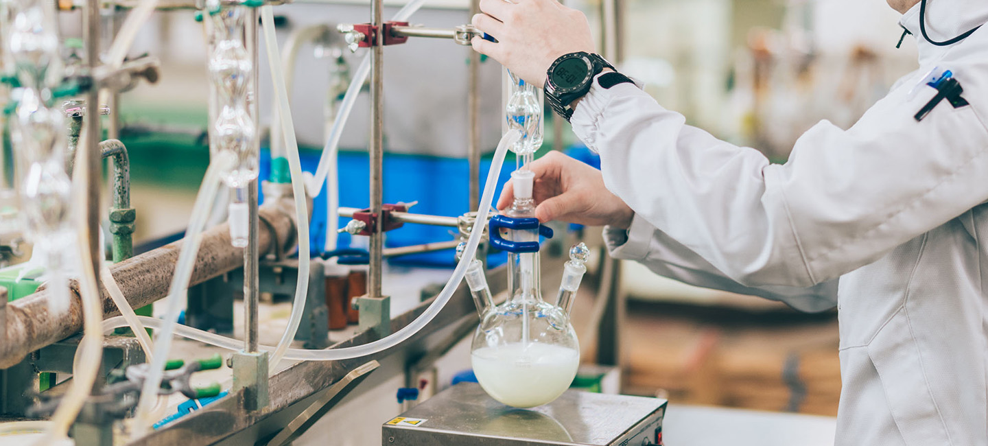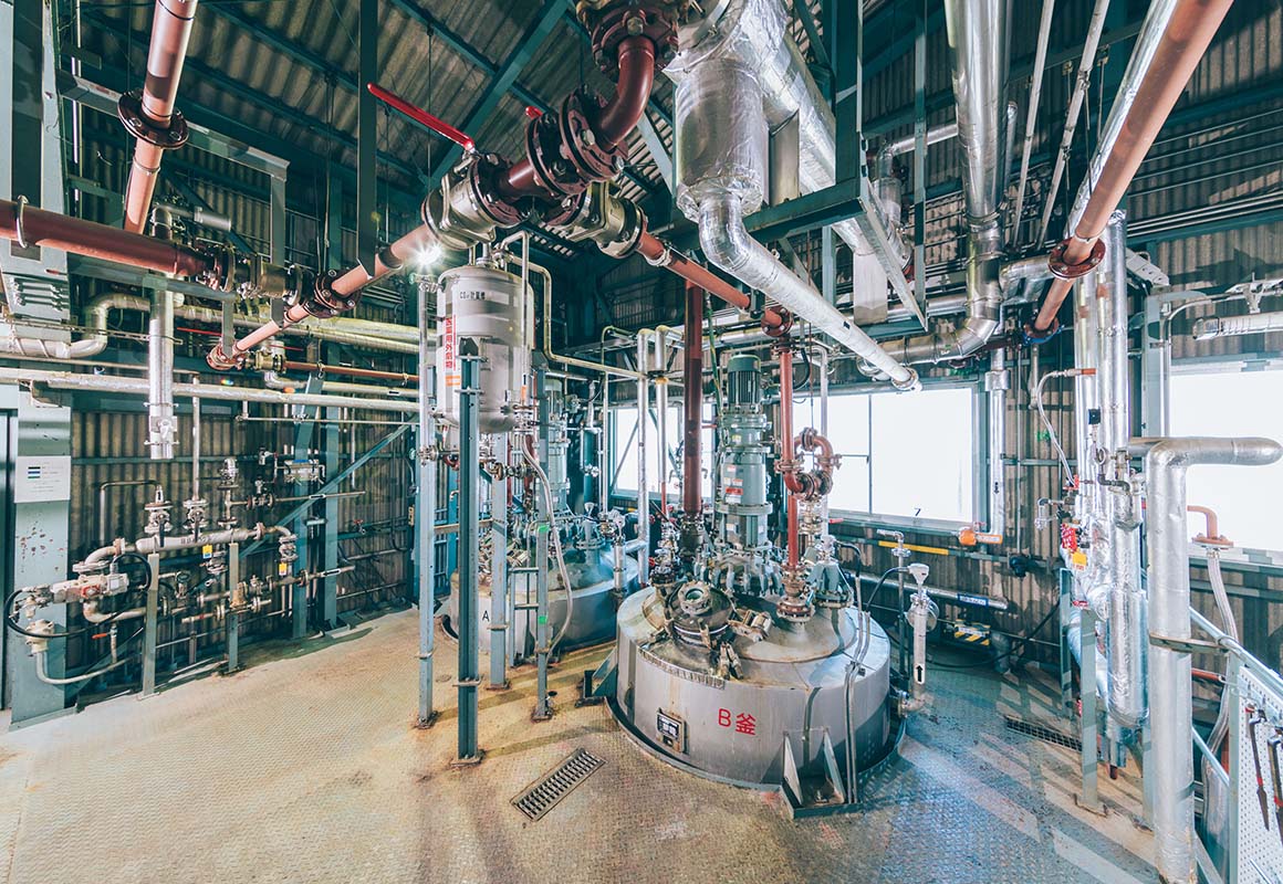 現行の製造設備を生かしながら新規原料選定や製法を変更することで、工場での製造がより安全で安価に行えるよう日々検討しています。